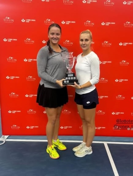 Viktória Hrunčáková (na snímke vľavo) získala titul vo štvorhre na turnaji ITF WTT W75 v Toronte (60 000 USD, tvrdý povrch v hale). Spolu s Ruskou Anastasiou Tichonovovou zvíťazili vo finále v pozícii štvrtého nasadeného páru nad americkou dvojicou Fiona Crawleyová, Jaeda Danielová a zdolali ju 6:4, 6:2 za 61 minút. Pre zverenku trénera Tomáša Hrunčáka a kondičného Kristiána Cupáka je to celkovo pätnásty deblový titul medzi ženami, päť z nich získala na okruhu WTA.