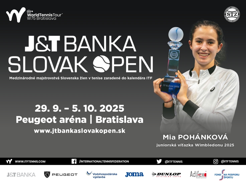 Medzinárodný šampionát v tenise žien píše v tomto roku už svoje dvadsiate piate pokračovanie. Tradičný ženský turnaj - J&T Banka Slovak Open - sa uskutoční v termíne od 29. septembra – 5. októbra 2025 v bratislavskej Peugeot aréne Národného tenisového centra. Turnaj je zaradený do kategórie ITF World Tennis Tour s dotáciou 60 000 USD. Vstupenky na podujatie si môžete zakúpiť v sieťach www.predpredaj.sk, www.ticketportal.sk a na recepcii NTC.