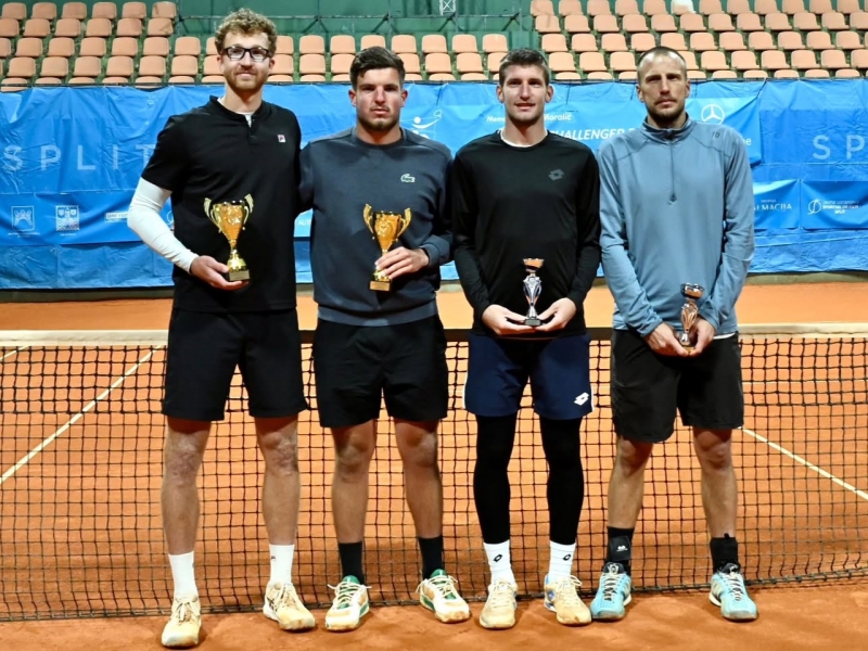 Miloš Karol (na snímke vľavo) spolu s Chorvátom Milim Poljičakom získali titul vo štvorhre na challengeri 50 v Splite (56 700 eur, antuka vonku). V pozícii štvrtého nasadeného páru zvíťazili vo finále nad bosnianskym tandemom Mirza Bašič, Andrej Nedič a suverénne ho zdolali 6:2, 6:2 za 47 minút. Celým pavúkom prešli bez straty setu. Pre dvadsaťtriročného slovenského daviscupového reprezentanta je to tretí challengerový titul vo štvorhre, prvý v tomto roku.