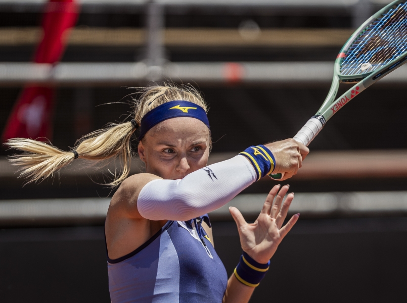 Slovenské tenistky vedú v druhom stretnutí barážovej skupiny o účasť v budúcoročnej kvalifikácii Pohára Billie Jean Kingovej nad Švajčiarskom 1:0. O prvý bod sa na antuke v argentínskej Córdobe postarala Viktória Hrunčáková (na snímke), ktorá zdolala Susan Bandecchiovú 7:5, 6:2 za 99 minút. Skúsená slovenská reprezentantka otočila v úvodnom sete nepriaznivý stav 1:5. V druhej dvojhre nastúpia proti sebe tímové jednotky Rebecca Šramková a Simona Waltertová.