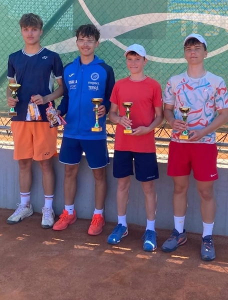 Martin Adamča (na snímke vpravo) získal titul vo dvojhre aj štvorhre na medzinárodnom turnaji TEJT 2 hráčov do 14 rokov v Trnave. V singlovom finále dvoch najvyššie nasadených hráčov si poradil s Maxom Kimakom 6:2, 7:6. Vo štvorhre sa z titulu tešil s Igorom Malinkom po víťazstve 7:6, 6:1 nad česko-slovenskou dvojicou Max Kimak, Jakub Suda. Adamča, zverenec trénera Miloslava Grolmusa, získal svoj druhý singlový a siedmy deblový titul na okruhu TE v kategórii do 14 rokov. Malinka sa tešil zo svojho druhého turnajového víťazstva v debli.